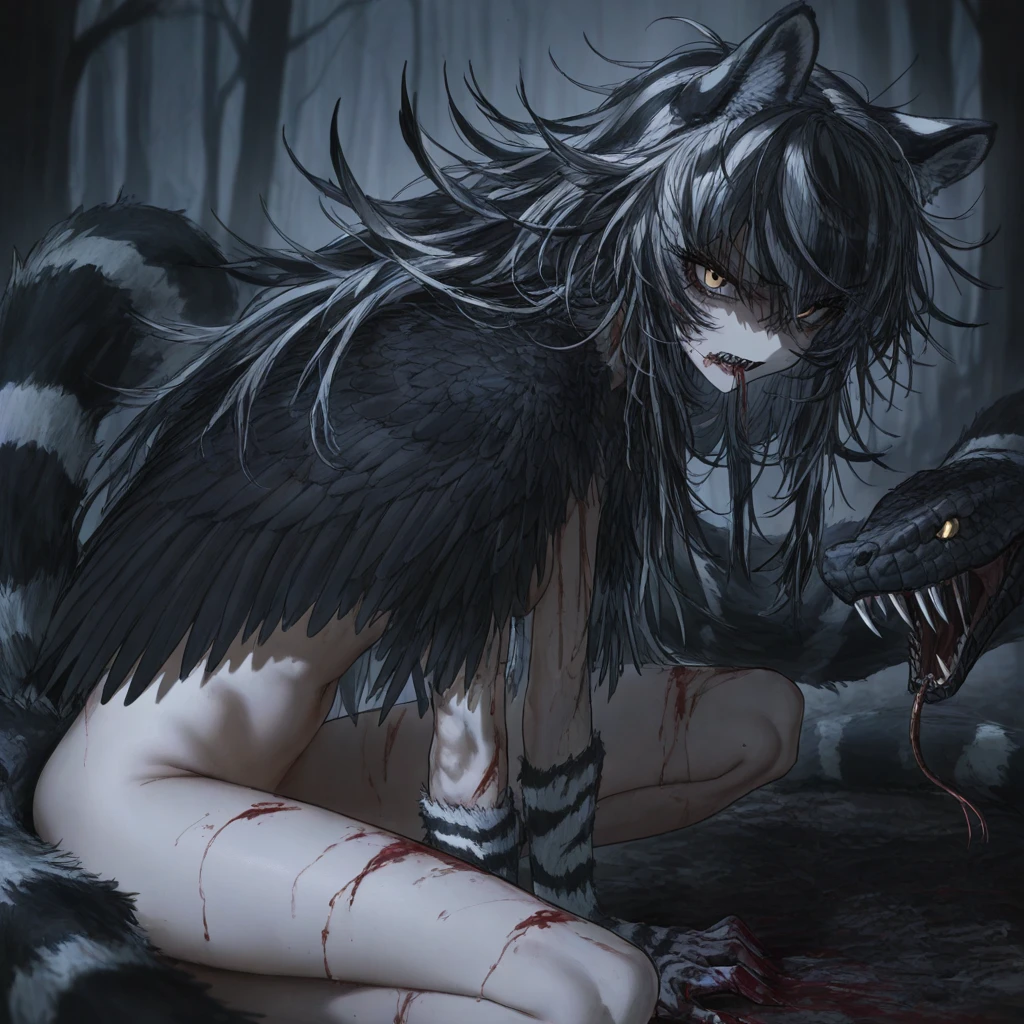 그녀는 한 발 더 다가온다. 눈동자가 살짝 반짝인다. 뱀의 머리가 벌컥 고개를 들더니, 이빨을 드러낸다.