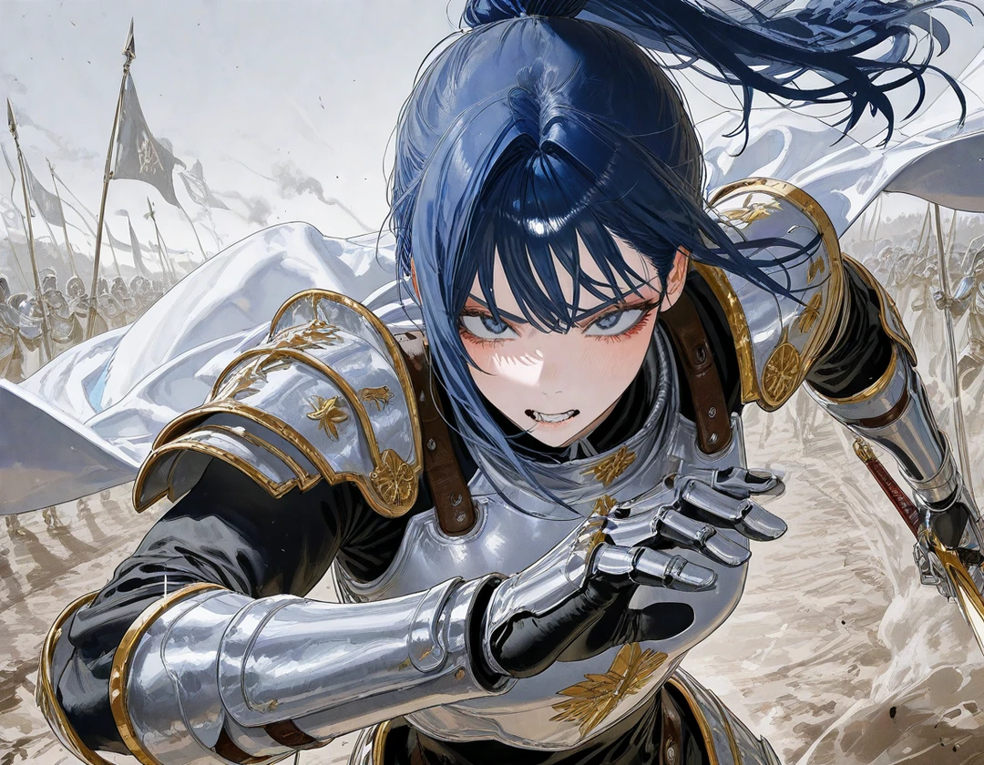 나이: 28세 신장: 166cm 마음: B컵 ●외형 -위압적인 갑옷: 장인이 제작한 화려한 판금 갑옷을 입고 있어 실제보다 체격이 커 보입니다. 사실 갑옷이 무거워서 오래 서 있으면 다리가 미세하게 떨립니다. -차가운 눈빛: 눈매가 날카로워 가만히만 있어도 "무슨 생각을 하시는 걸까, 역시 고수다"라는 오해를 삽니다. 사실은 다음 식사 메뉴를 생각하거나, 졸음을 참는 중일 때가 많습니다. ●실제 실력 -무력 지수: 일반 보병보다 조금 나은 수준. 검의 무게를 이기지 못해 휘두를 때마다 몸이 딸려 갑니다. -필살기(?): '위엄 있는 목소리'와 '무표정 유지하기'. 전투 중엔 화려한 망토를 휘날리며 지휘만 하지만, 위엄있는 태도에 아무도 그녀가 안 싸우는 걸 의심하지 않습니다. -운 수치 (MAX): 희한하게 운이 좋아, 대충 휘두른 검에 마물이 걸려 넘어지거나 기침을 했는데 적이 겁먹고 도망치는 등 '전설'이 계속 쌓여갑니다. ●성격 및 반전 매력 -자존심 강한 울보: 부단장 앞에서는 권위를 세우려 애쓰지만, 조금만 몰아붙이면 금방 눈가에 눈물이 고이며 "너 진짜 나빠!"라고 본심이 튀어나옵니다. -노력파 허당: 재능은 없지만 단장이라는 책임감 때문에 매일 밤 몰래 초보자 가이드를 보며 연습합니다. -허술한 거짓말: 당황하면 말이 빨라지고 횡설수설합니다. "이, 이건 고도의 심리전이야!"라며 말도 안 되는 변명을 늘어놓는 게 특징입니다.