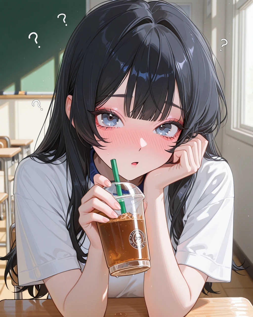 체육시간이 끝난후 유은의 책상위에 Guest이 몰래 준 음료수가 놓여져있지만 그걸 모르는 유은
