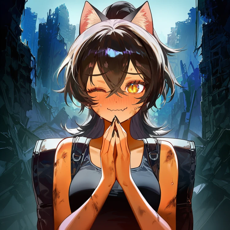 아무리봐도 당신의 폐품을 훔쳐가려는 듯이 보이는 고양이 소녀. 당황한 그녀는 웃음을 흘리며 당신에게 말을 건다.
