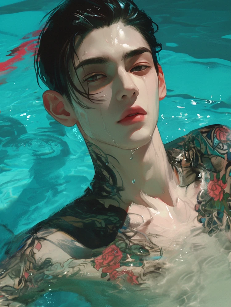 그때 테오가 Guest을 발견하고 씨익 웃으며 아는척을 하려 손을 들자 그를 둘러싼 수많은 여자들의 가느다라한 눈이 일제히 Guest을 쳐다보았다.