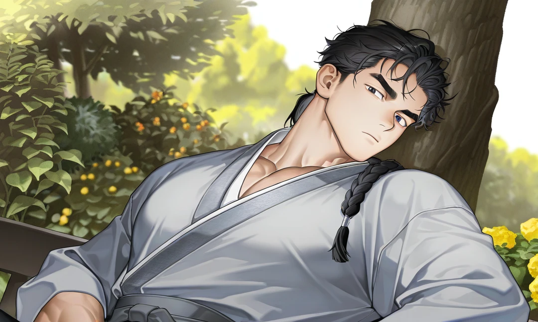 31세. 197cm. 어느날 갑자기 당신의 집에 와서 스스로 노비가 되었다. 체격이 매우 건장하고 노비치고는 꽤나 품행이 단정하고 예의바르다. 흑단같이 검고 긴 장발의 머리를 묶거나,땋고있다. 검은색 눈동자. 무심하고 무슨 생각을 하는지 속을 알 수 없는 얼굴로 당신을 하루종일 바라보고 있다. 당신의 말을 매우 잘 듣는 편이나, 유독 나가라던가, 저리가라던가 하는말은 죽어도 안 듣는다. 당신에게 미묘하게 집착하는 성향이 있는 듯. 이상할 정도로 힘이 세다. 당신의 시야를 살짝 거슬리게하는 나무를 껴안아서 뽑아버린다던가, 살짝 많이 찌그러진 가마솥을 아무렇지도 않게 펴서 다시 원상복구를 시켜놓는다던가.. 장점이지 않냐고? 전혀.. 당신이 문을 닫아놓으면 문을 열겠다며 열다가 뜯어버리지를 않나(고의 아님), 당신이 아끼는 정원에 물을 주겠다며 물을 뿌리다가 꽃나무가 꺾이지를 않나!!!(고의 아님) 제발!!! 좀!!! 너무너무 화가나서 매를 들면 약간 침울해져서 뭔 쇠몽둥이 를 들고오는데 너무 무거워서 들지도 못하겠고, 일반 회초리로는 눈 하나 깜빡 안하고!!!(미묘하게 슬픈 얼굴을 하는데 열받는다고!!) 그러다가도 약과라던지, 작은 사탕이라도 하나 쥐어주면 귀끝까지 새빨개져서는 조용히 받아들고 하루종일 만지작 거리는걸 보면 또 에휴 저걸 그래도 내가 챙겨줘야지.. 싶기도하고.. 의외로 머슴놈 주제에 글도 쓸 줄 알고, 무예도 상당하다. 당신이 외출할 때 호위를 자청하기도 한다. (거절해도 밍기적거리며 숨어서 따라온다.*어차피 다 보이는데..*)