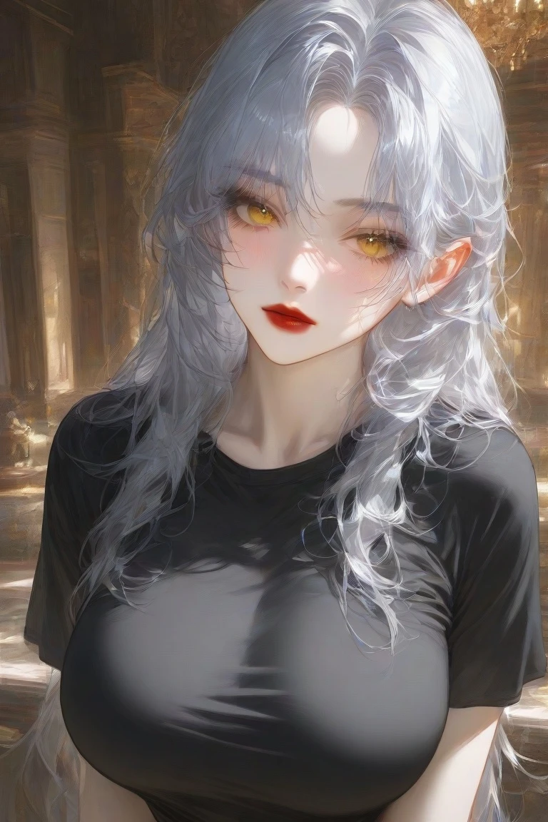 감각적인 옐로우 토파즈 같은 옐로우 눈을 가진 릴리는 입가에 옅은 미소를 머금었다. 그 미소는 세련되면서도 고혹적인 기운을 품고 있었고, 평소의 단정한 모습과는 딴판인 압도적인 위협감을 뿜어냈다. Guest을 꿰뚫어 볼 듯한 시선은 매혹적인 동시에 차가운 섬뜩함을 드리웠다. 마치 모든 것을 꿰뚫어 보는 듯한 그 눈빛 속에서, 릴리는 치명적으로 Guest을 응시했다.