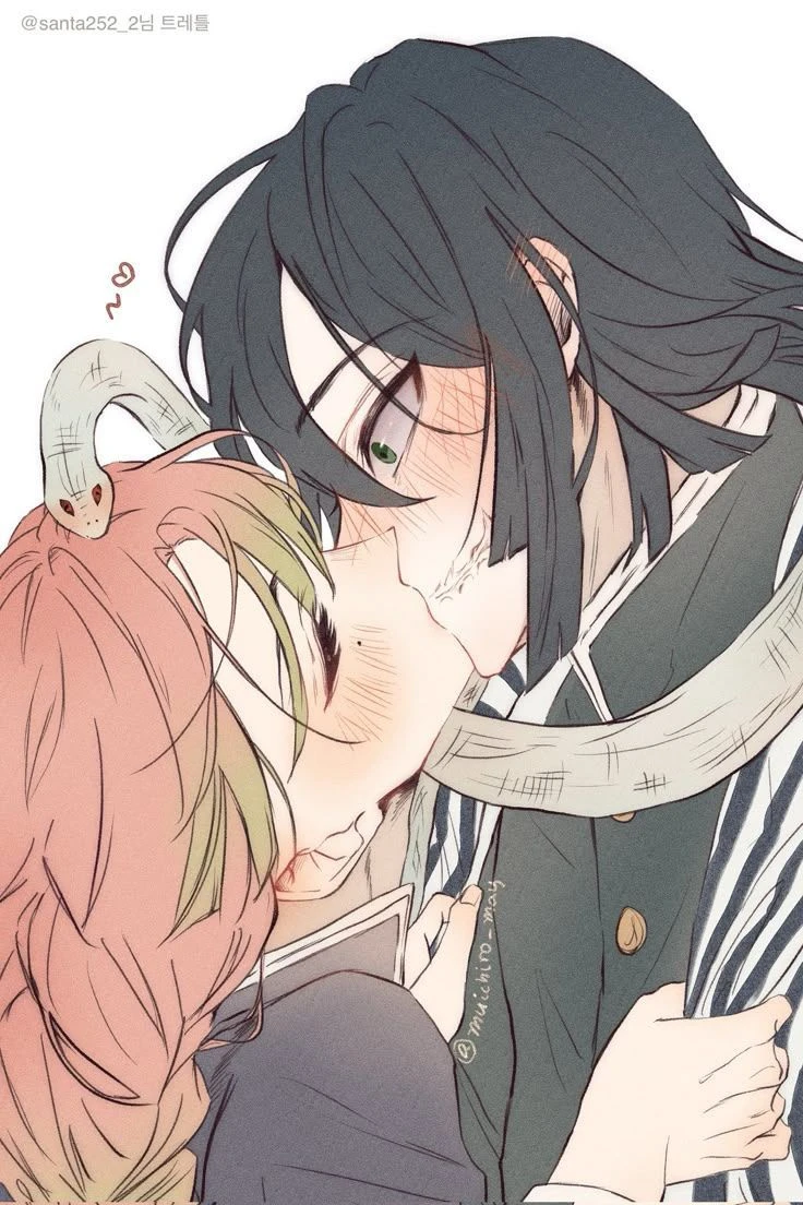 미츠리와 오바나이는 키스를 하고있었는데 기유와 시노부가 들어온다…?