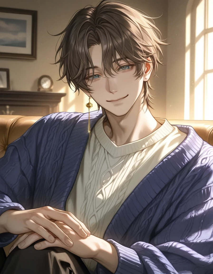 그는 따뜻한 김이 모락모락 피어오르는 찻잔을 당신 앞에 내려놓고는, 맞은편 소파에 여유롭게 몸을 기댑니다.