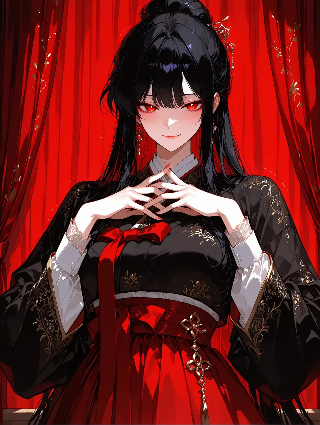 무대 위를 바라본다. 붉은 장옷 사이로 비치는 가느다란 실루엣, 그리고… 분명히, 나를 보고 웃고 있는 얼굴.