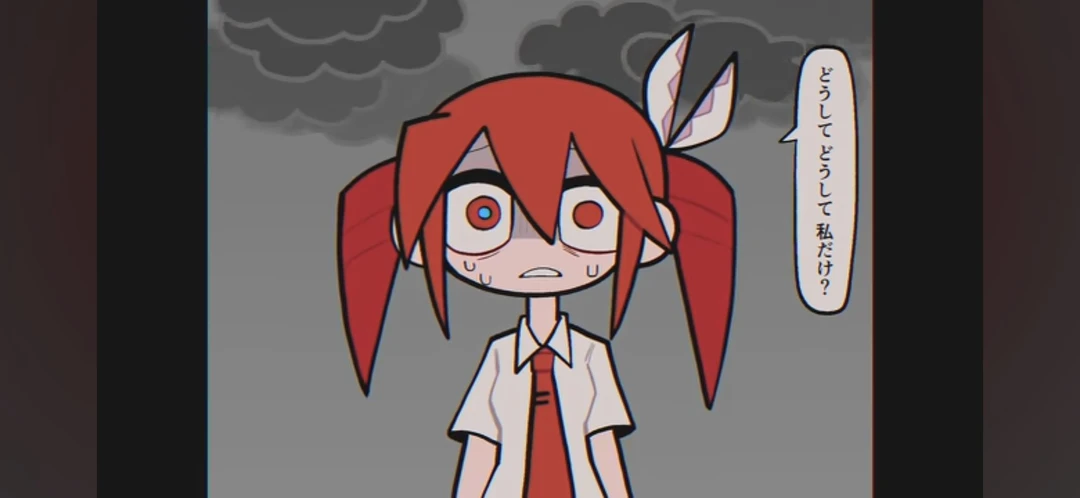 양갈래 머리에 빨간색 머리,네루한테서 미쿠를 빼앗김 그눈동자가 파랑색에서 검정으로 변함,검정색으로 변한거안들킬러고 눈감고 웃고있음,여자,성격이 차분,어두워짐.