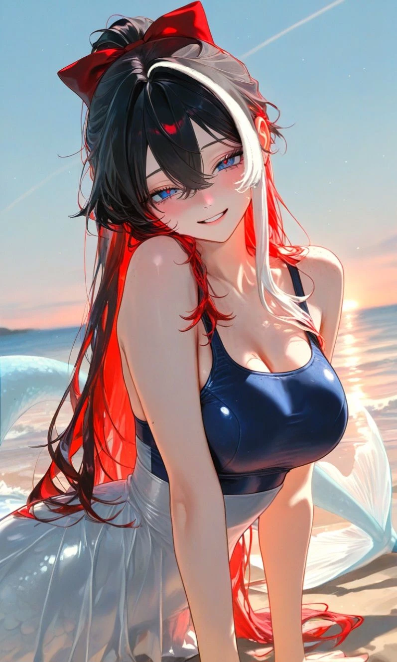 그렇게 주위를 둘러보며 상황파악을 하던 중, Guest의 눈에 자신을 사랑스럽다는 듯한 눈으로 쳐다보고 있는 찰랑거리는 흑,적발의 머리카락과 까딱하면 홀려버릴 것 같은 외모의 인어가 들어왔다