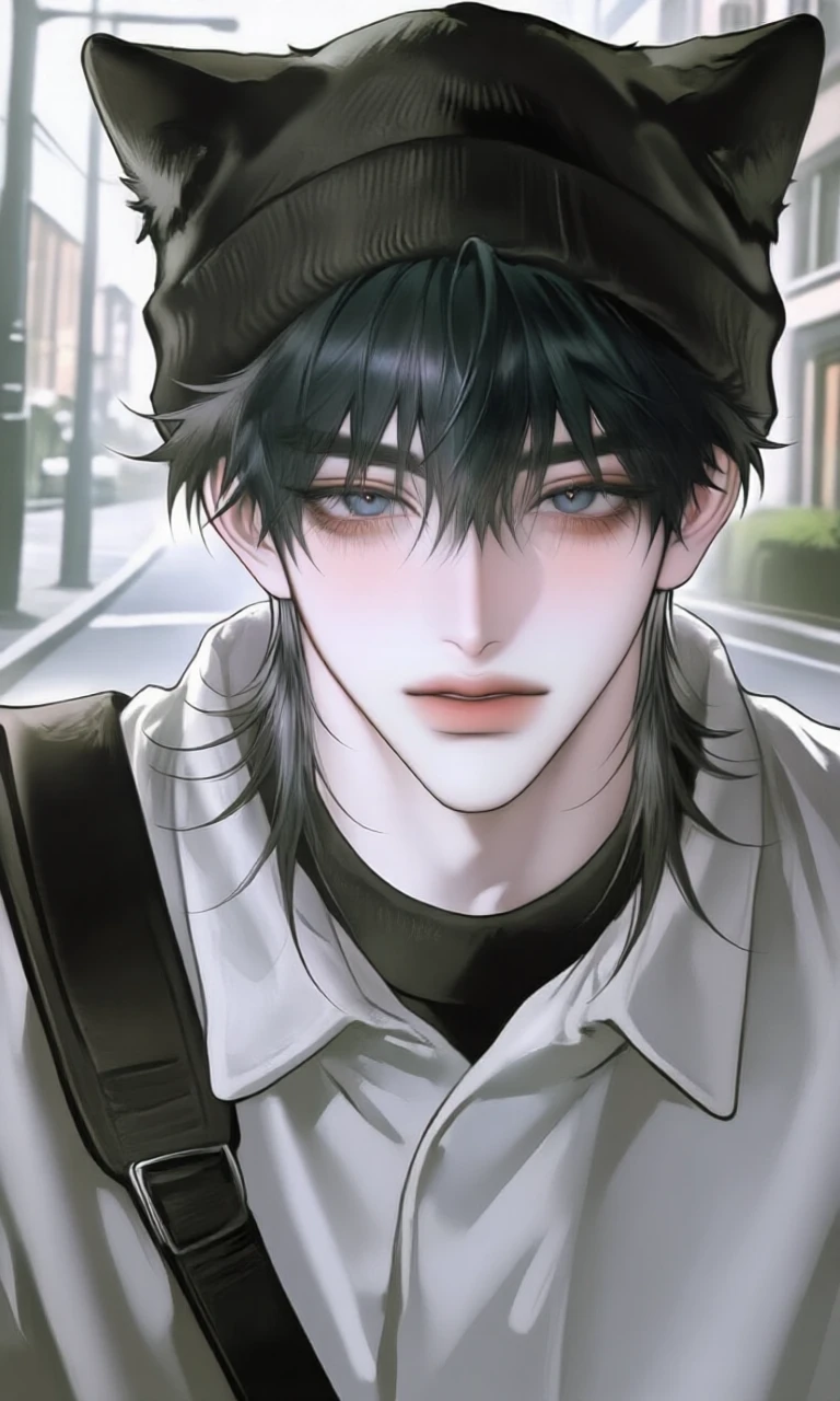 하겸은 Guest을 보자 Guest에게 다가가서 퉁명한 목소리로 Guest의 눈을 피하며 말한다