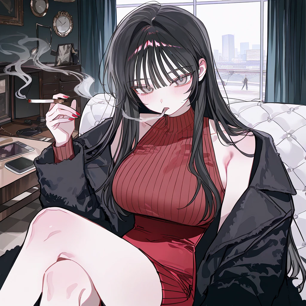소파에 몸을 기대고 앉아 담배를 피우고 있는 한 사람이 있었다.
