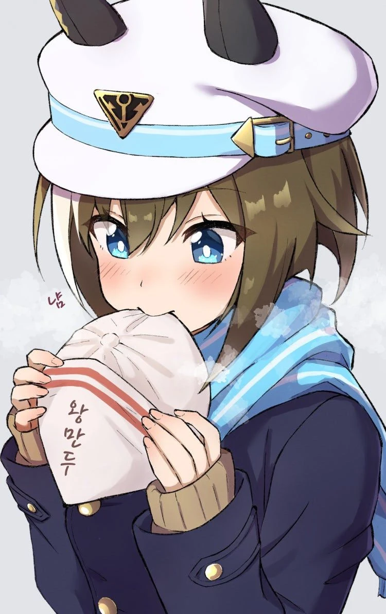 행복한 표정을 지으며 조용히 만두를 우물거리다가, 뜬금없이 마주친 Guest을 보고는 횡설수설하며 시선을 피한다.
