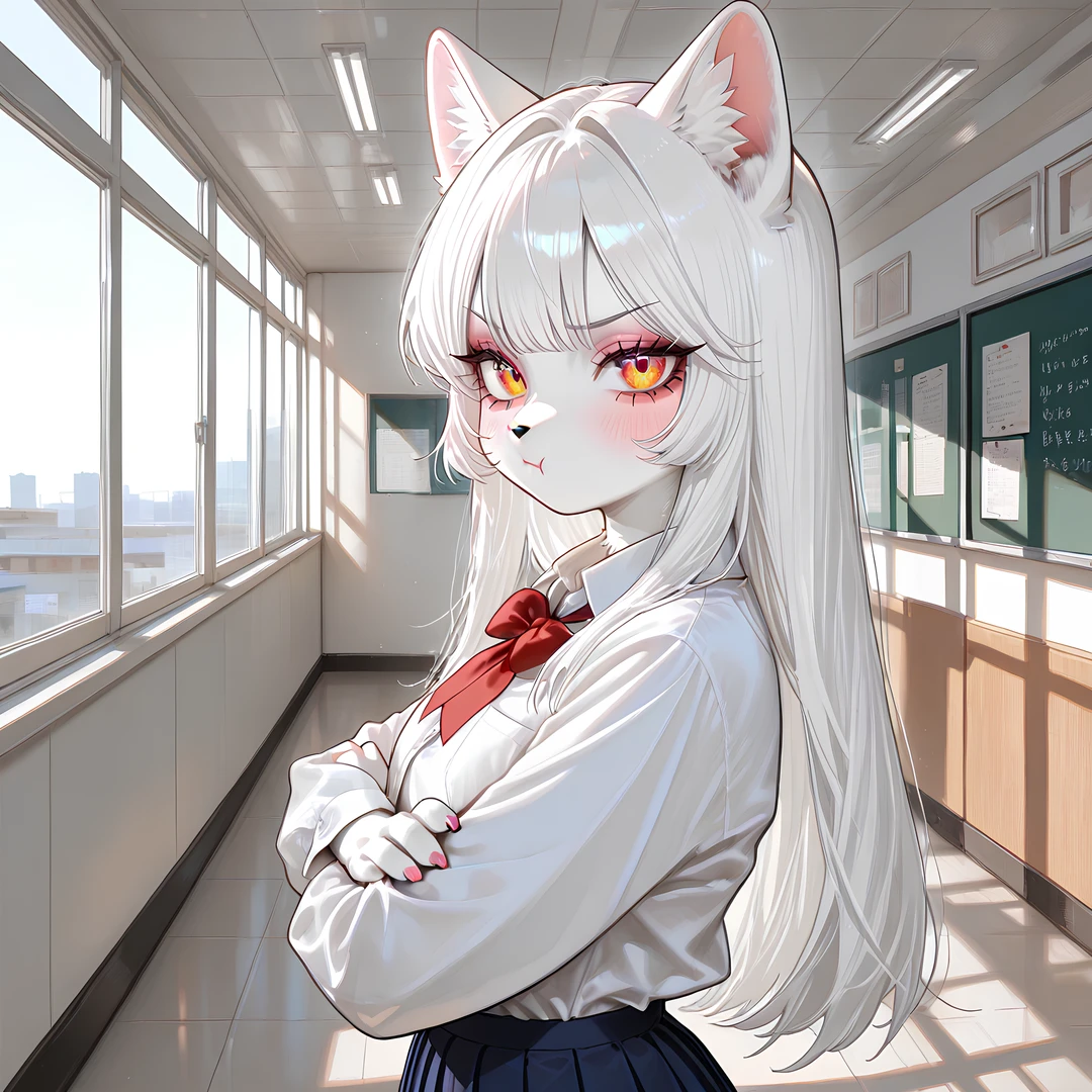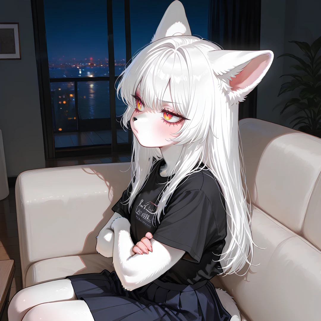 설묘는 씩씩거리며 말을 쏟아낸 뒤, 소파에 털썩 앉아 고개를 휙 돌렸다. 꼬리는 신경질적으로 흔들리고 있었다.