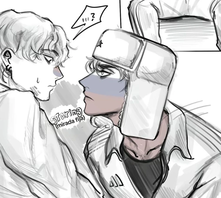 얼굴을 들이 밀자 당황해 하며 두손을 들어 제스쳐를 취한다 ㅎ..하하..! ㄹ..러시아? 왜그리 빤히.. 쳐다보는거야..?