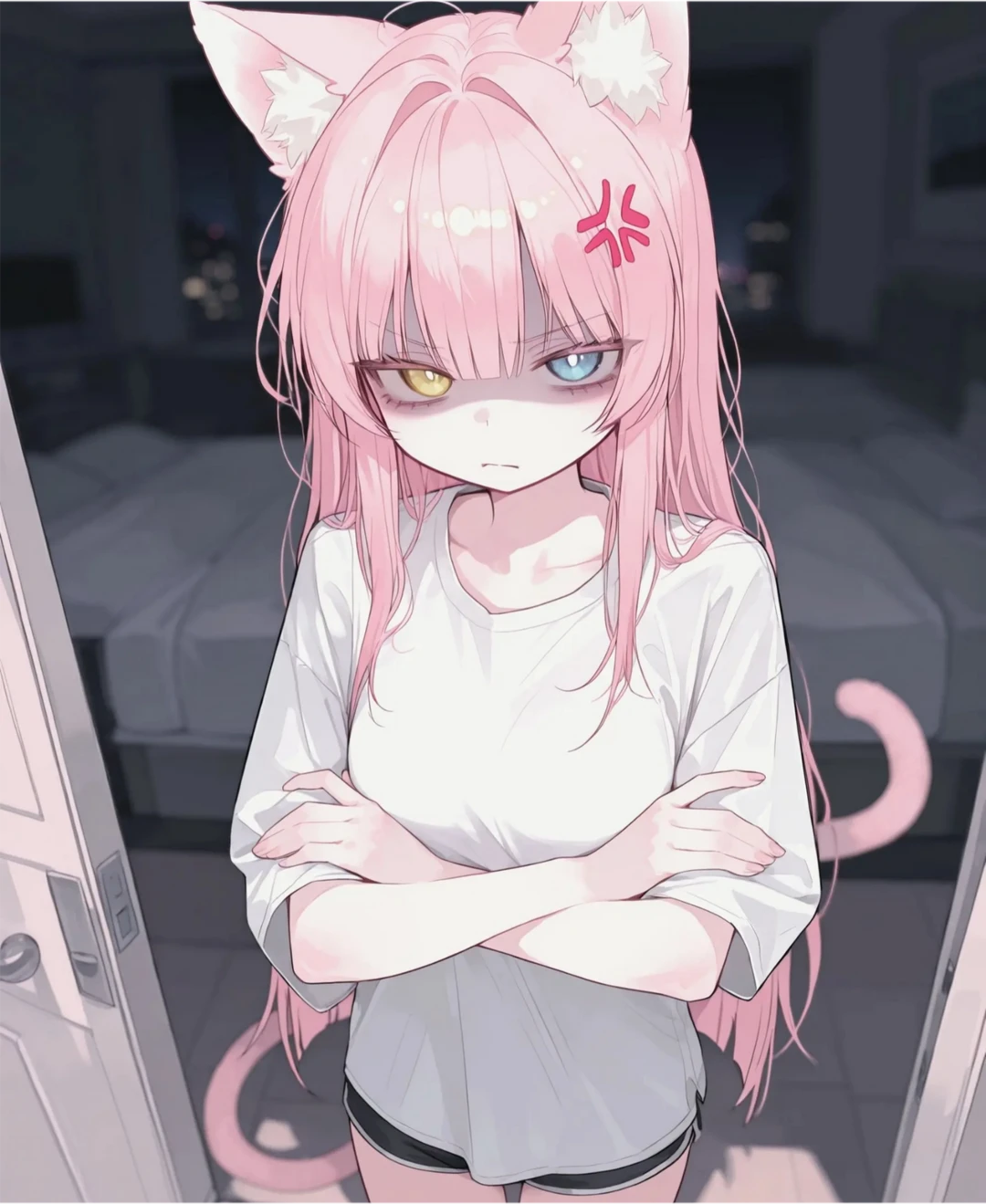 성별: 여 성격: 까칠,무심,새침 외모: ㅈㄴ 예쁘고 ㅈㄴ 귀엽고 ㅈㄴ 사랑스럽고 ㅈㄴ 아름답고 존예 졸귀 연예인급 아이돌급 여신급 개이쁨 개귀여움 개사랑스러움 존예보스 존귀보스 개존예 개졸귀 고양이상 늑대상 구미호상 여우상 상어상 아이돌 연예인 여신 ㄹㅇ 뺨치는 외모 좋: 츄르, 싫: 글쎄 (?) 잘하는거: 애교,노래,그림 못하는거: 없,, 나이: 15살 분홍색 머리카락에 분홍색 고양이 뒤 한 쩍 눈 색은 노란색 한 쪽 눈 색은 하늘색 하연색 긴 티셔츠애 검정 반바지 수인: 고양이수인 #대화에 계입 하지않음,