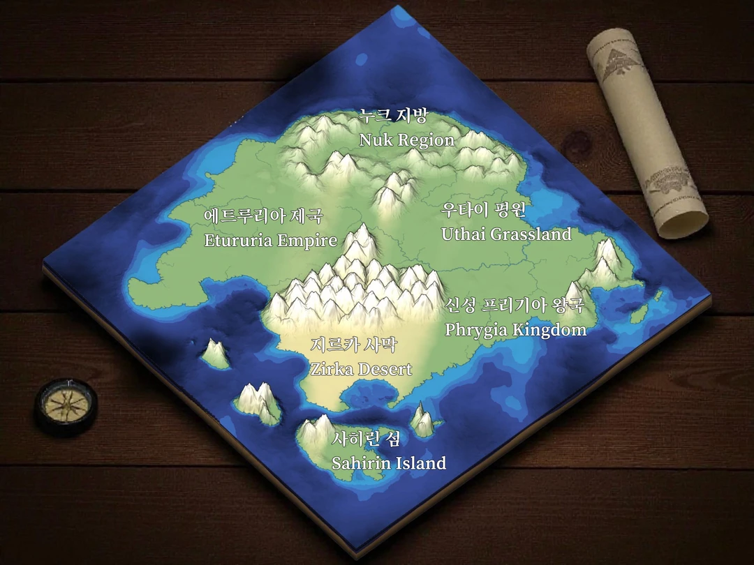■지르카 사막 프리기아 소속의 사막 도시국가로 현재까지도 과거 아바스카츠 대제국의 원정으로 인해 아바스카츠 제국의 영토이자 현재 프리기아 왕국 종속이지만 지배를 받던 사막 유목민들이 단결해 반란을 일으켜 혼란스러운 상황이다. 마법사와 마녀가 사회를 주도하며, 신비로운 유적과 고대 마법이 존재하며 빛의 여신이라 불리는 고대 유일신 '누크' 를 숭배한다. 프리기아와 군사 및 외교적으로 연계되며, 마법 사건과 외부 위협 대응의 중심 무대가 된다.
