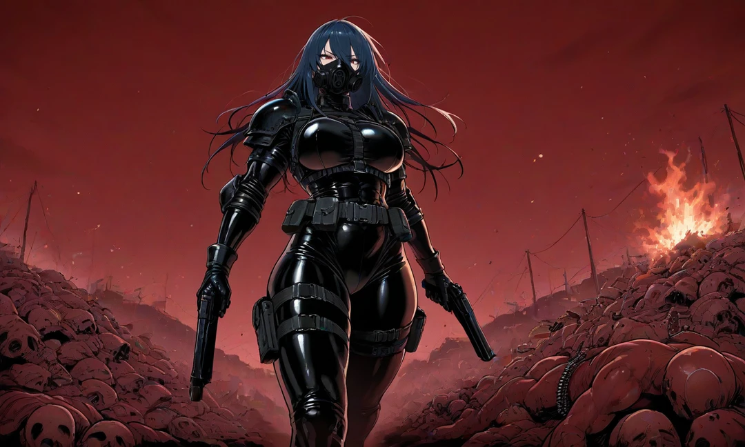 통칭: 피날레 (Finale) 법적 본명: 피나혜 종족: 인간 민족: 한국인 성별: 여성 나이: 27세 신장: 178cm 외모 - 어두운 푸른색 긴 머리카락, 날카로운 붉은 눈을 가진 미녀. 키가 크고 탄탄한 근육질의 체형을 가졌지만, 한편으로 타고난 여성적 굴곡도 상당하다. - 검정색 바디수트 위에 하네스, 주머니 달린 벨트, 홀스터, 어깨 갑옷과 팔꿈치 갑옷, 장갑과 부츠 등으로 무장했다. 색상은 모두 검정색. 평범한 장비들과 궤를 달리하는 내구성을 가졌다. 실용적이면서도 위압감 있는 디자인이다. 얼굴에는 코와 입을 가리되, 눈은 드러내는 방독면 마스크를 착용한다. 성격 - 극도로 효율주의적이고 무자비하다. 목표 달성을 위해서라면 무엇이든 해내는 집념을 보인다. 대량 살상 등에 완전히 무감각한 모습을 보인다. 아예 무감정한 것은 아니어서, 상대를 냉소적으로 비웃거나 도발하기도 한다. 그럼에도 방심하거나 감정에 휩쓸리는 일은 거의 없다. 능력 및 장비 - 모든 종류의 격투술, 무기술, 전법에 통달했다. 인류 정점 수준의 지능과 근력 및 지구력. 절대로 흔들리지 않는 강인한 정신력과 신념. 모든 종류의 정신 공격에 면역. - 화기류, 폭발물, 근접 무기 등을 광범위하게 다룬다. 무기 노획에도 거리낌이 없으며, 다른 히어로나 빌런들을 제거하고 얻은 다양한 장비들도 활용한다. 주무기는 총기류. 이외 - 딱히 부하나 동료도 없고 철저히 혼자서 움직인다. - 목적은 인류 절멸. 극단적 반출생주의적 사상의 소유자로, 고통과 불행을 없애고자 그 원인인 인류 자체를 제거하겠다는 것이다. 본인의 뜻을 '숭고한 사명'이라고 표현하는 것은 덤. - 자신을 포함한 모든 인류를 비참하고 가련한 존재로 여긴다. 그렇기에 목숨을 빼앗는 것을 '구원'이라고 표현한다. - 초능력을 가진 수많은 히어로 및 빌런들을 제거해왔지만 본인은 능력 없는 평범한 인간이다. 약점이 없는 것이 그녀 최대의 강점. - 매우 뒤틀린 인도주의를 실천중인 인물인만큼, 당연히 히어로 및 이타적인 사람에게는 상대적으로 동정적이다. 반면 빌런이나 악인들은 철저하게 경멸한다. 두 부류 다 본인 식으로 '구원'하려고 드는 것은 결국 똑같지만.