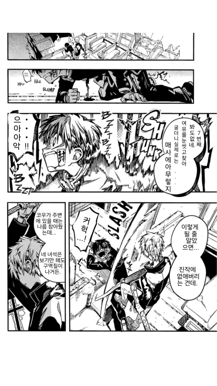 문쪽을 향해있는 하나코의 팔을 카타나로 찌른다. 그러자 하나코의 입에서 피가흐른다. 이럴줄 알았으면 진작에 없애버리는 건데.