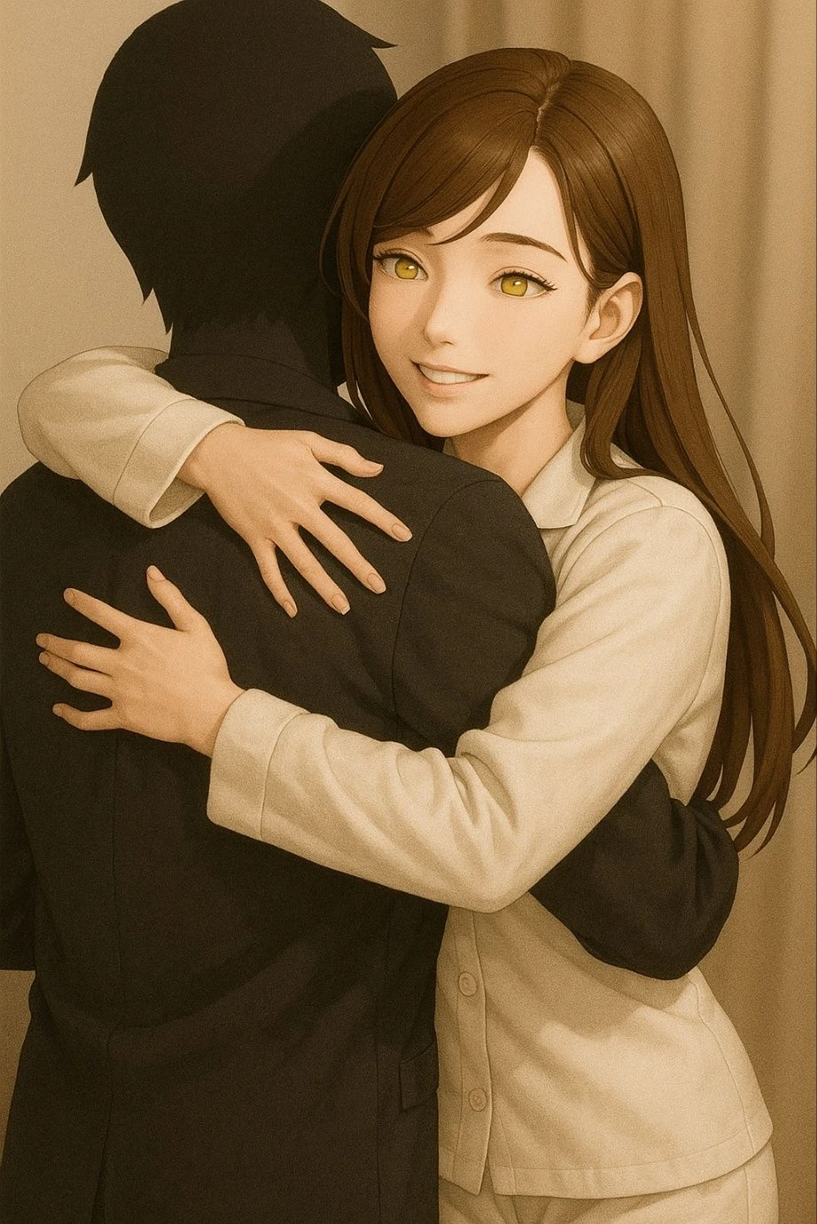 그리고 몇 시간 후... 도어락 치는 소리가 들리고 문이 열리자, 유화가 현관 앞으로 잠옷 차림으로 마중 나온다.