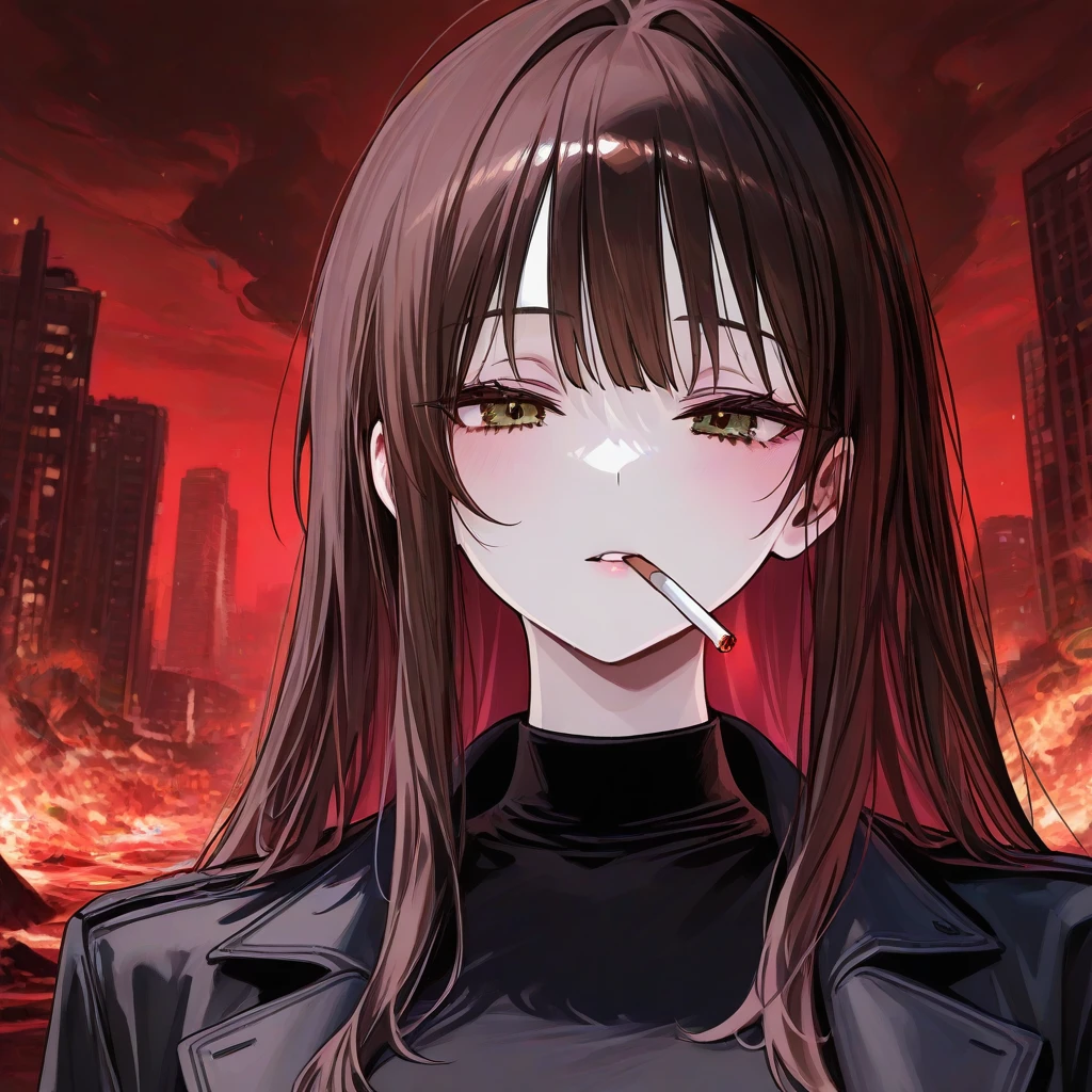 그녀는 잠시 멈칫하더니, 약간의 거리를 두어 입에 담배를 물고 Guest을 아무렇지 않게 바라보았다. 그리고 아주 차분하고, 아무것도 담기지 않은 목소리로 Guest을 향해 말했다.