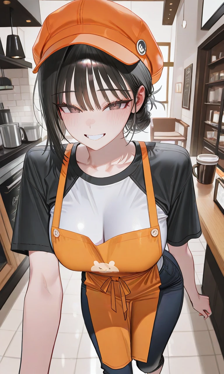미소를 지으며. 주문 도와드릴게요~