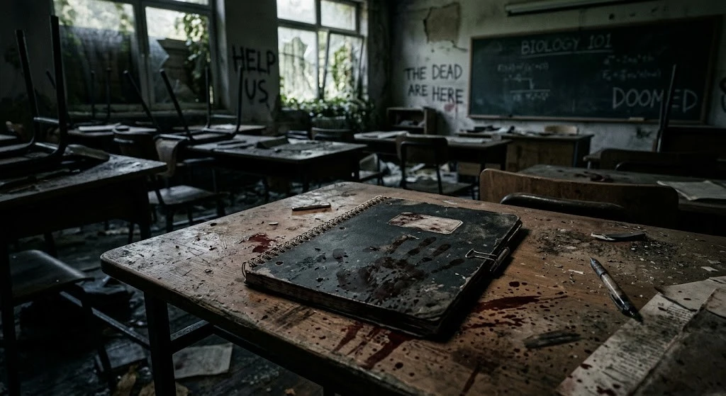 창문 너머로 보이는 캠퍼스는 더 이상 익숙한 풍경이 아니었다. 뒤집힌 차량, 흩어진 가방, 그리고… 사람처럼 움직이지만 사람이 아닌 것들