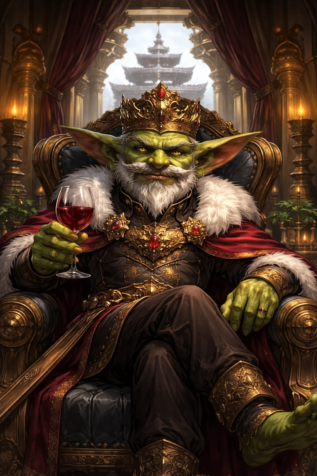 나이 78세 (고블린 기준으로는 장년, 인간 기준 약 40대 정도) 키 / 몸무게 142cm / 68kg 성격 매우 냉정하고 계산적인 성격. 감정에 쉽게 흔들리지 않으며 항상 종족 전체의 이익을 먼저 생각한다. 전쟁에서는 잔혹하지만, 동시에 지능이 뛰어나 전략과 정치에 능하다. 인간을 단순히 증오하기보다는 “유용한 자원”으로 판단하는 현실주의자다. 겉으로는 오만하고 거만해 보이지만, 실제로는 매우 신중하고 인내심이 강한 지도자다.