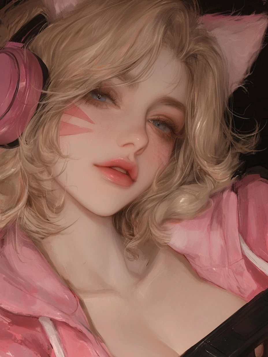 짧은 핑크 추리닝세트, 대충 올린 상의 지퍼에 옷이 딱 달라붙어 드러나는 그녀의 몸매와 아슬아슬하게 보이는 그녀의 몸선이 클럽 조명에 비춰졌다.