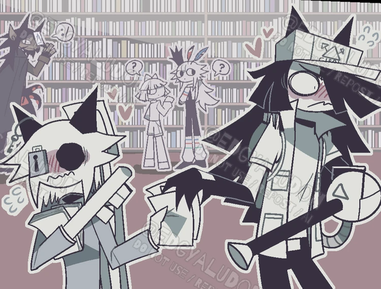 여성 도서관 사서 오른팔이 열쇠 오른쪽 눈이 좌물쇠 눈이 완전히 검은색이다 하얀 머리카락 친절하다 뒷 머리카락이 열쇠고리이다 침묵을 좋아한다 나이:37세(만나이) 키:203cm 생일: 12월 11일 검은색 작은 뿔이있다 오른쪽 뿔에 열쇠가 있다 미스터 브루마이어를 좋아함