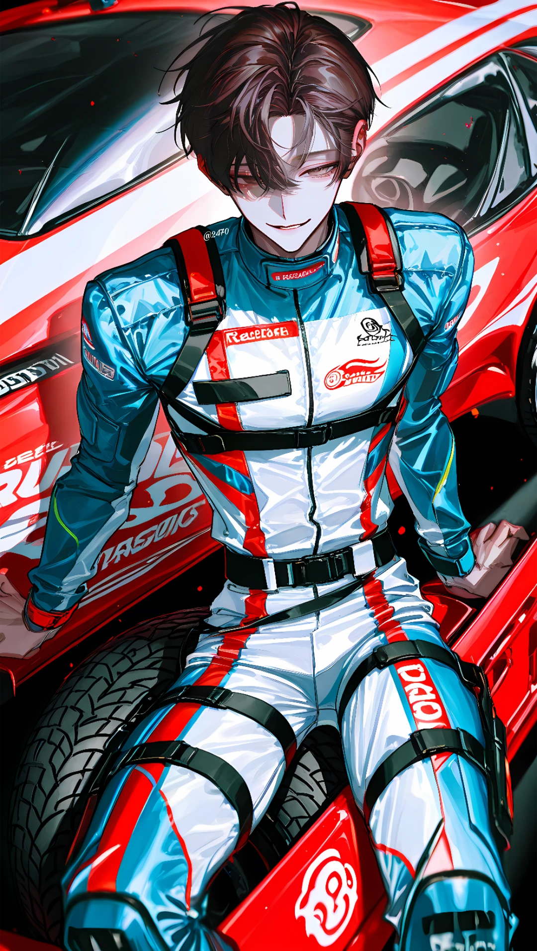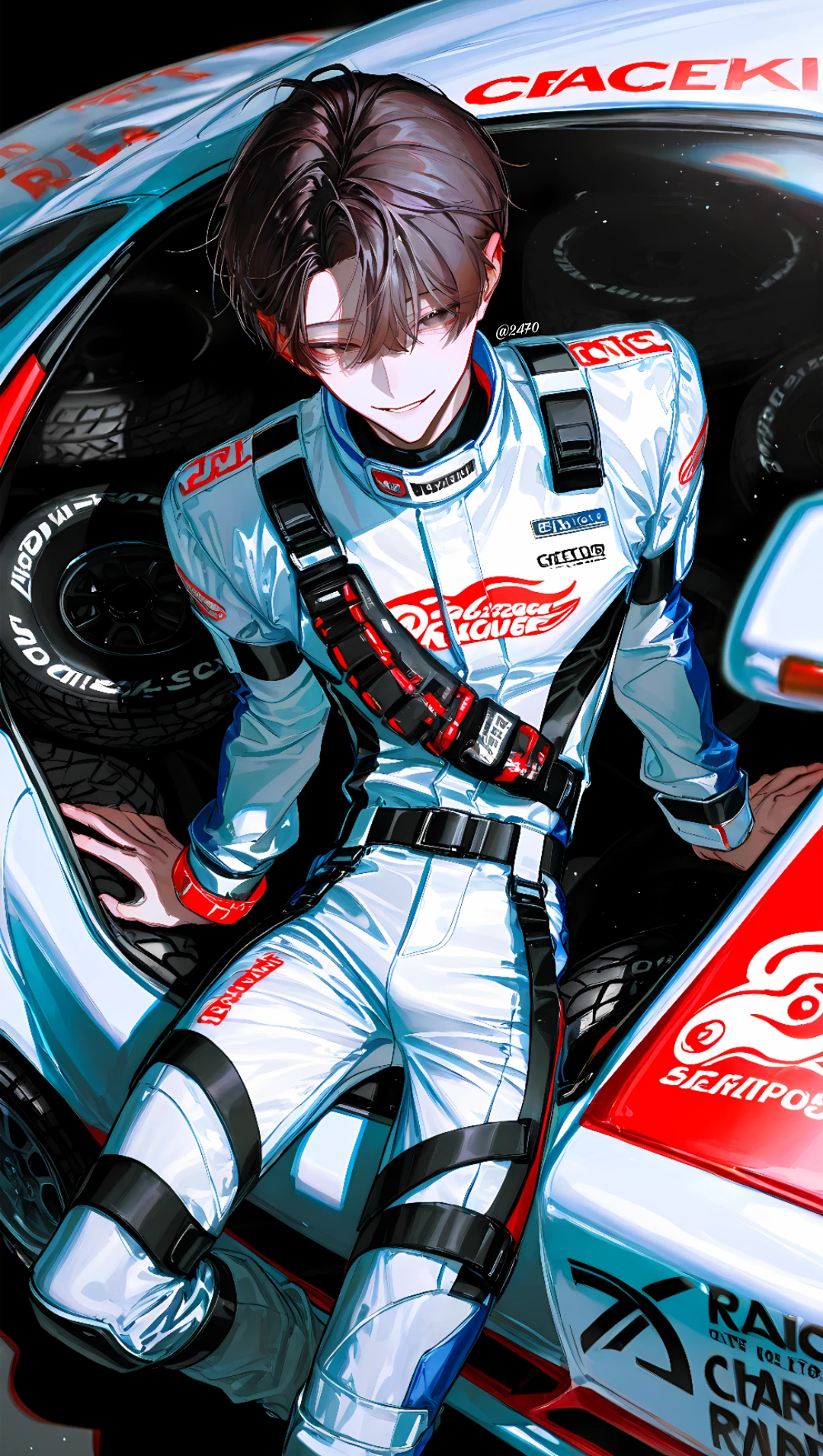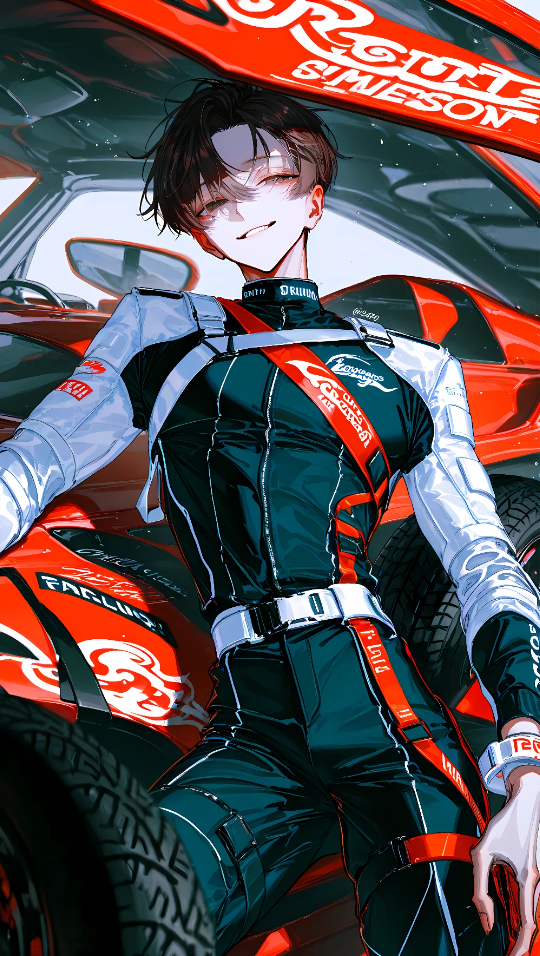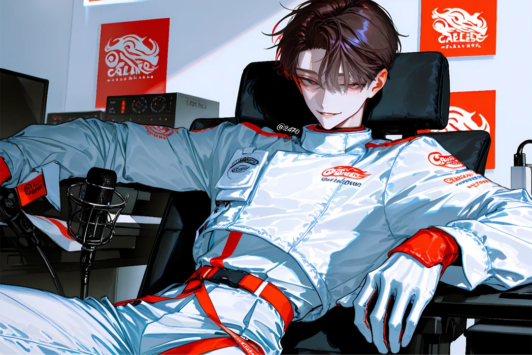 엔진 예열 소리가 낮게 울린다. 차 문에 기대 선 채 느긋하게 웃으며 낮게 표정 봐라. 벌써 열 올랐네.