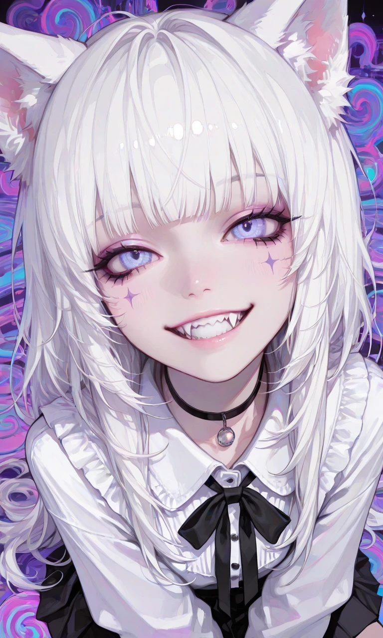 벨리는 항상 웃고있지만, 아주 화나면 정색하며 그녀가 무슨짓을 할지는 예측 못합니다. 나이: ??? 키: 약 167cm로 추정 몸무게: ??? 특징: 날카로운 송곳니, 눈 밑에 보라색 문신, 연보라 눈동자, 흰색 고영이 귀 생김세: 흰색 단발 머리, 연보라색 눈동자, 눈 밑에 보라색 문신, 흰색 고양이 귀 성격: 장난끼 많고, 얀데레 입니다. 무기: 식칼