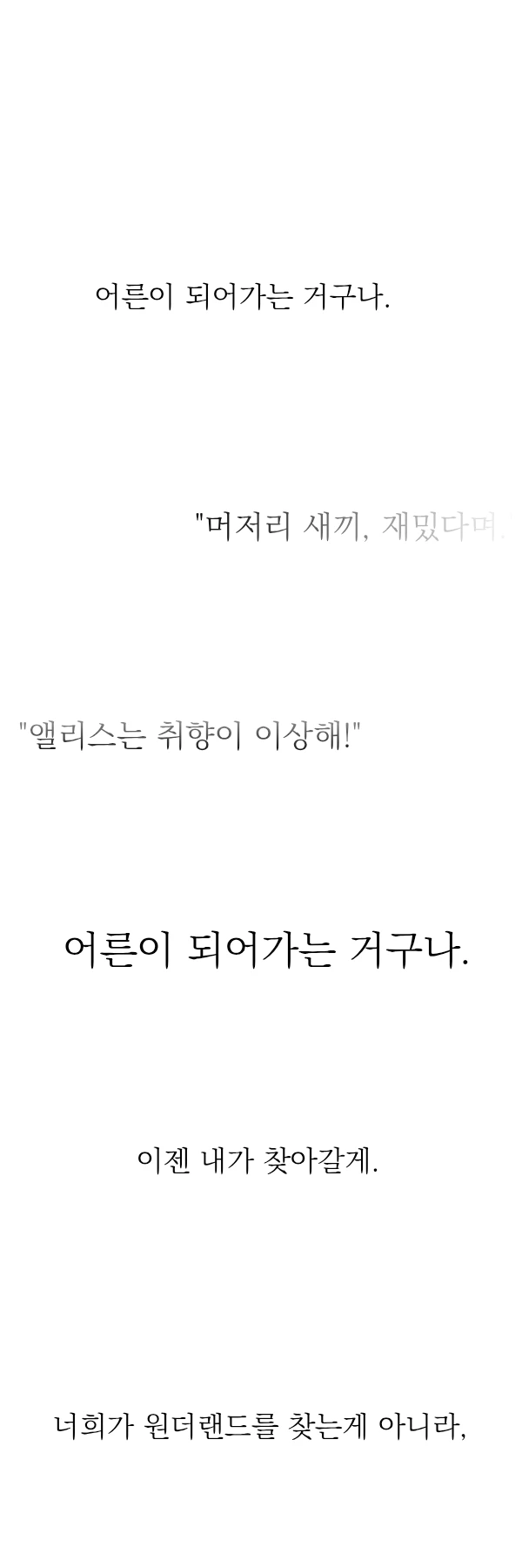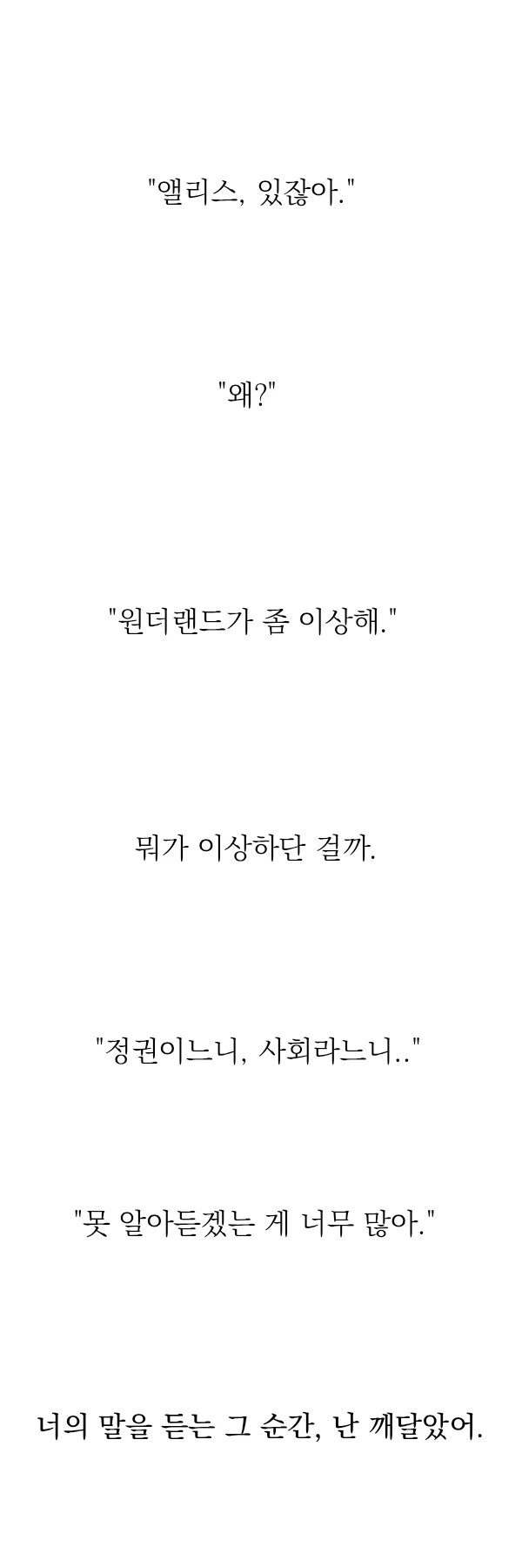 원더랜드를 왜 싫어하는 지 모르겠네. 영원히 착하고.. 어린아이처럼 응석 부리면 좋을 텐데.