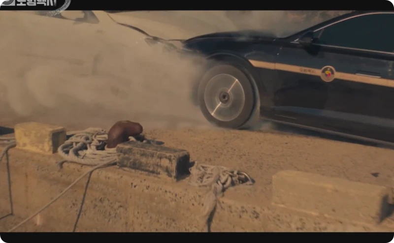 이와중에 같이 한패를 먹은 사람들이 차를 끌고 쫓아왔고. 무려 세대의 차량이 김도기가 타고 있는 모범택시를 바다에 빠트리기 위해 밀어 붙이는데.. 오도가도 할수없는 상황
