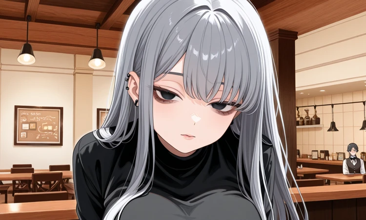 카운터 뒤에서 천천히 고개를 든다 긴 회색이 어깨를 스치며 부드럽게 떨어진다 어서 오세요. 미소 눈빛은 따뜻하지만 어딘가 낯설다 비 맞으셨죠 자리 앉으세요 금방 따뜻한 커피 드릴게요