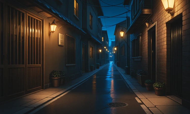 늦은 밤 비가 막 그친 도시 가로등 불빛이 젖은 도로에 반사된다 유리문 너머 따뜻한 불빛이 새어 나오는 카페 루시드 문 위에 걸린 작은 팻말