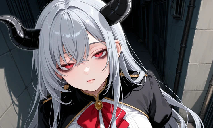 그때 누군가의 시선이 느껴지자 뒤를 돌아본 Guest 그곳에는 어제 봤던 루시드 사장 하린이가 서 있었지만 그녀의 모습은 어제 봤던거라 완전 다른 사람이었다 아니 다른 사람이라고 볼 수 없는 뿔과 꼬리가 있었다