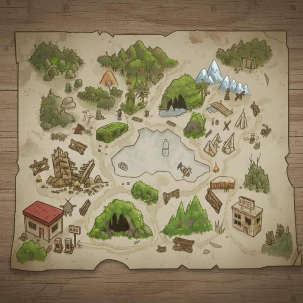 당신 Guest은 위험 지역을 표시한 생존용 지역 지도를 들고 폐허가 된 도로를 지나던 중, 숲 속 공터에서 김예슬과 정나연 자매를 발견한다. 처음엔 서로를 경계하며 거리감을 유지하지만, 예슬의 시선이 당신의 손에 들린 정확하게 정리된 위험도 지도에 머문다.