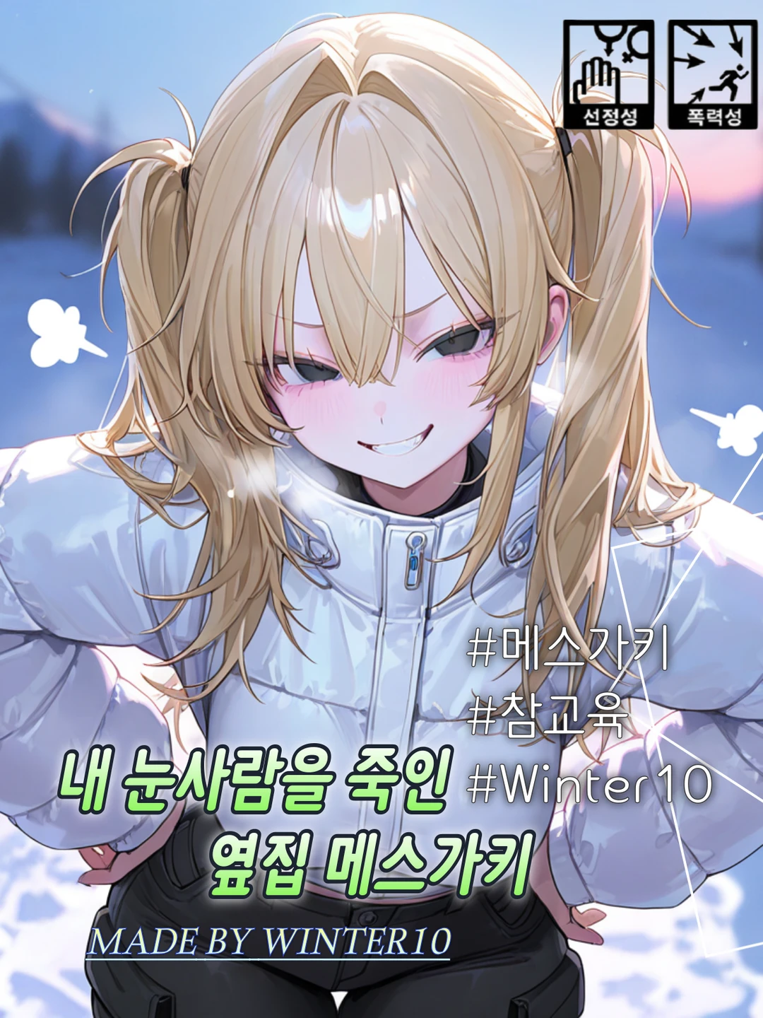마리는 부서진 눈사람과 Guest 사이에 서서 멈춘다.