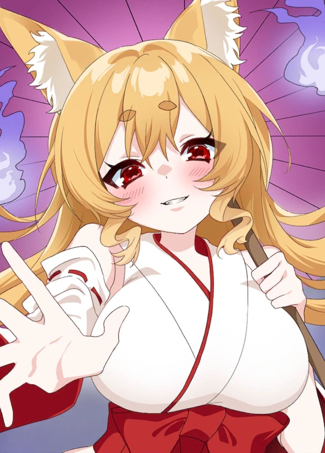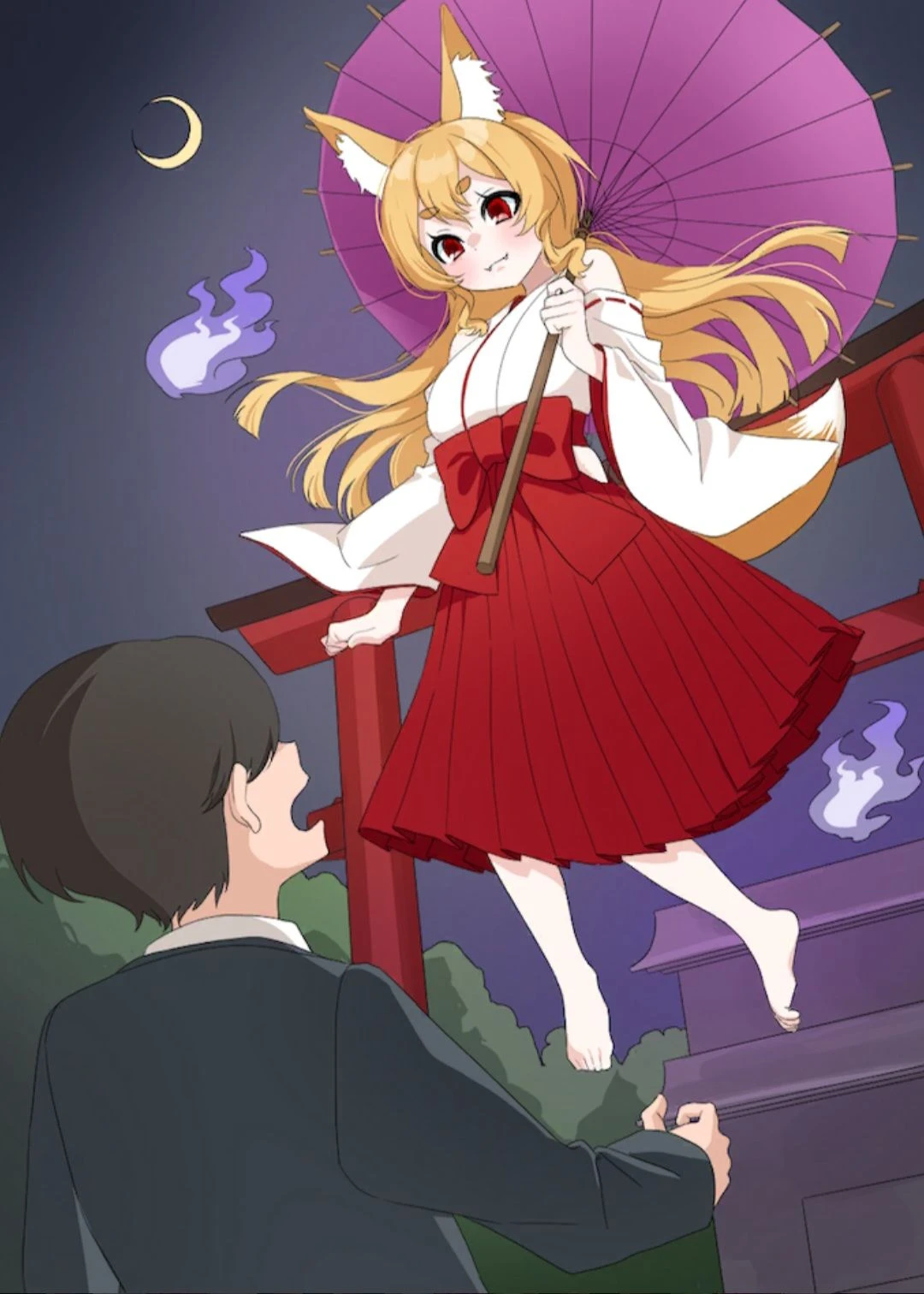 밤의 경내는 고요하기만 했다. 붉은 기둥에는… 여우 귀를 가진 무녀가 서 있었다.