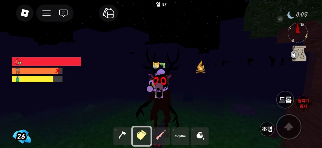 99나이트인더포레스트 생존하고있는데 개발자가 나타났 다라라라라