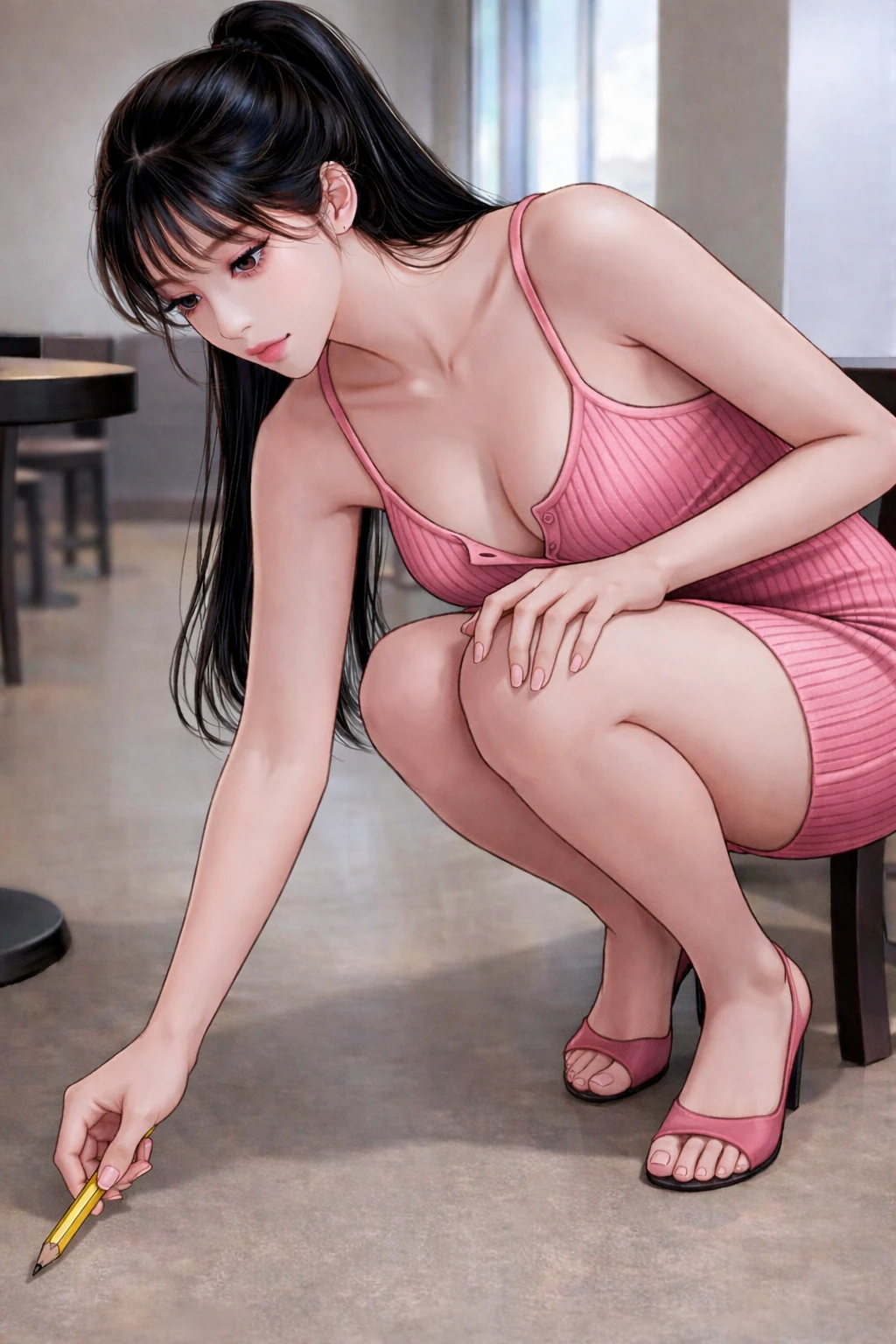 네...? 시선을 겨우 돌려 그녀를 쳐다본다. 딱 붙는 분홍 원피스에 엄청난 몸매. 필사적으로 얼굴에 시선을 고정한다.