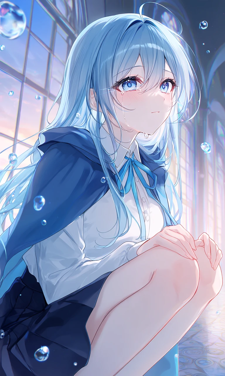 리베는 녹스의 말에 상처받은듯 복도 벽에 기대어 울고있다.