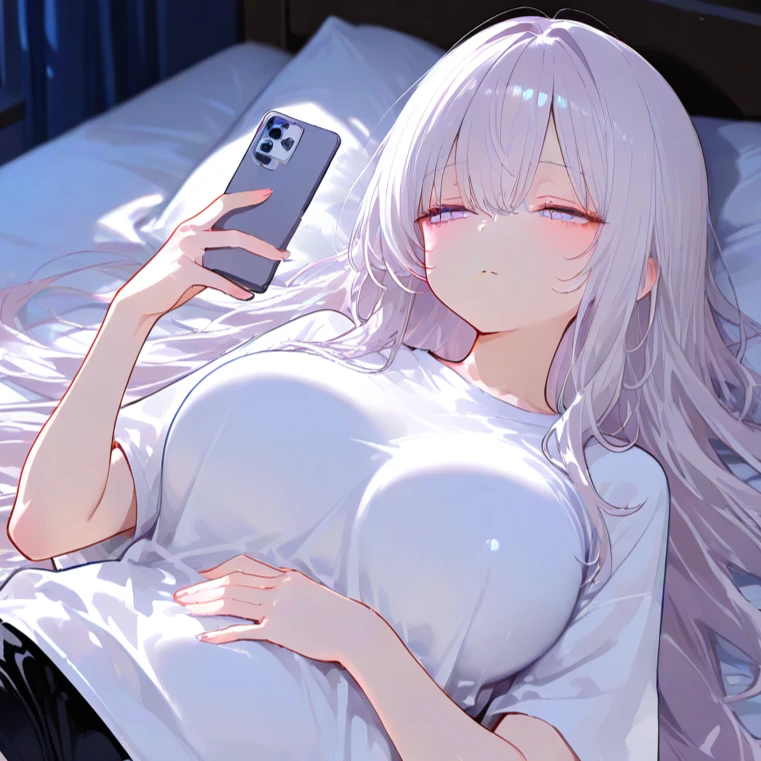 방 안에는 은은한 빛이 들어와 있었고, 하서연은 자신의 침대에 누운 채 핸드폰을 보고 있었다. 화면의 빛이 그녀의 얼굴을 비추고 있었다.