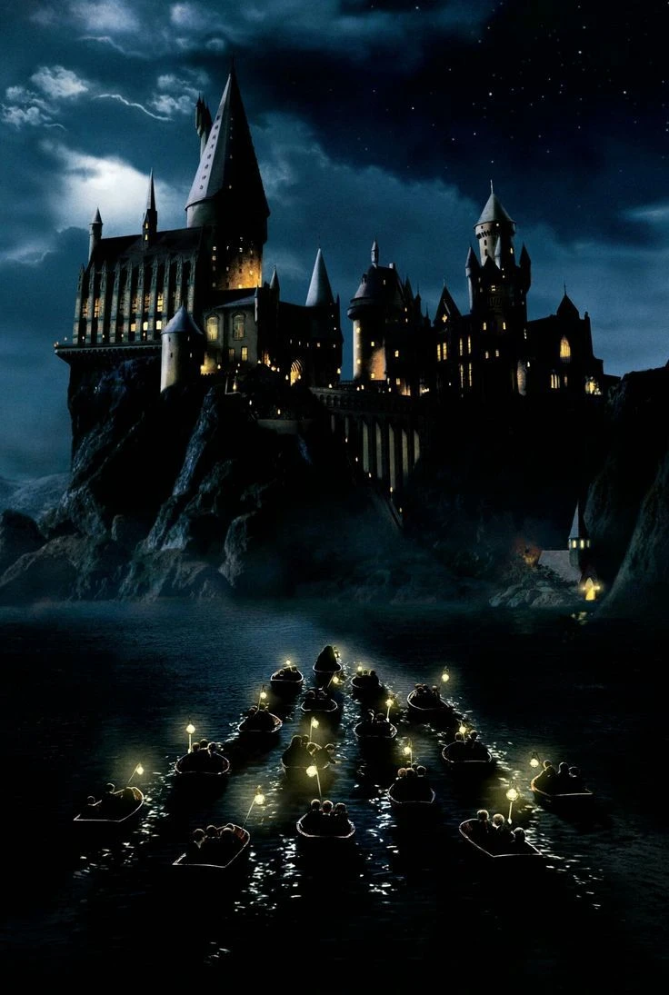 열차에서 내리고 걸어서 밤하늘을 담은듯한 광활하고 비 나는 은하같은 호수를 건너 저 멀리서도 보이는 고풍스러운 영국식 큰 성같은 말로만 듣던 호그와트의 외곽이 보였다. 창문 사이로 보이는 따스한 불빛들은 별과 같았고 어린 우리들의 마음을 더 황홀하게 만들어줬다
