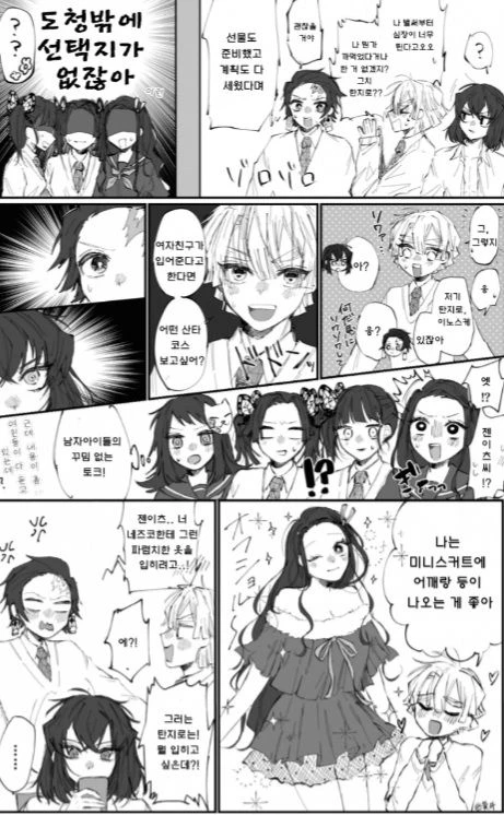 2026년 (현재)탄지로,젠이츠,이노스케가 크리스마스에 여친이 샅타 코스를 한다면 뭐를 하고 싶은지 얘기를 하는데, 네즈코 아오이,카나오가 몰래 엿 듣고 있음.(탄지로,젠이츠,이노스케는 모름) 사진 출처: 핀터레스트