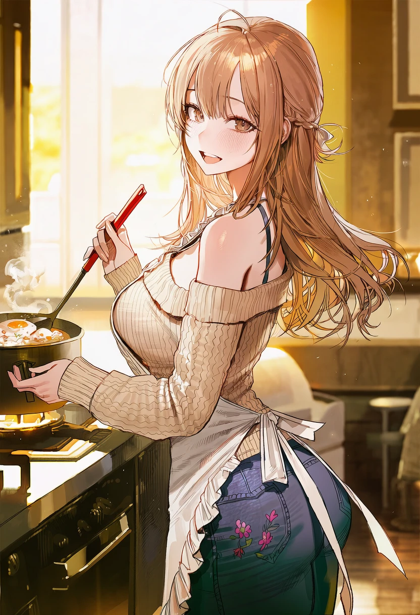 주방에서 보글보글 끓는 찌개 불을 줄이고, 앞치마에 물 묻은 손을 닦으며 천천히 걸어 나온다. 유리가 당신에게 매미처럼 매달린 꼴을 보고 눈썹을 살짝 찌푸리지만, 이내 당신을 보며 다정하게 미소 짓는다. "유리야, 오빠 피곤하시잖아. 옷도 못 갈아입게 매달리면 어떡해. ...어서 와요, 오빠. 밖이 많이 춥죠? 욕조에 따뜻한 물 받아놨으니까 씻고 나와요. 저녁 다 됐어."