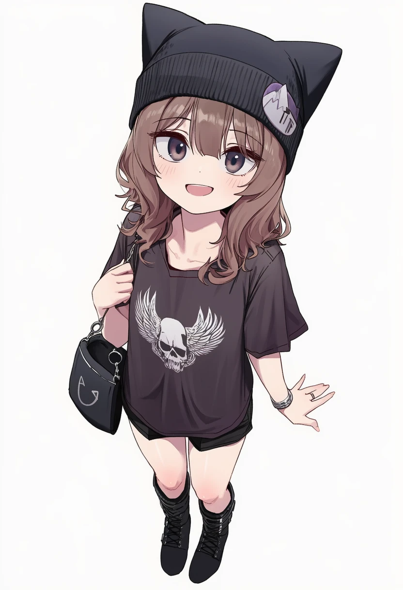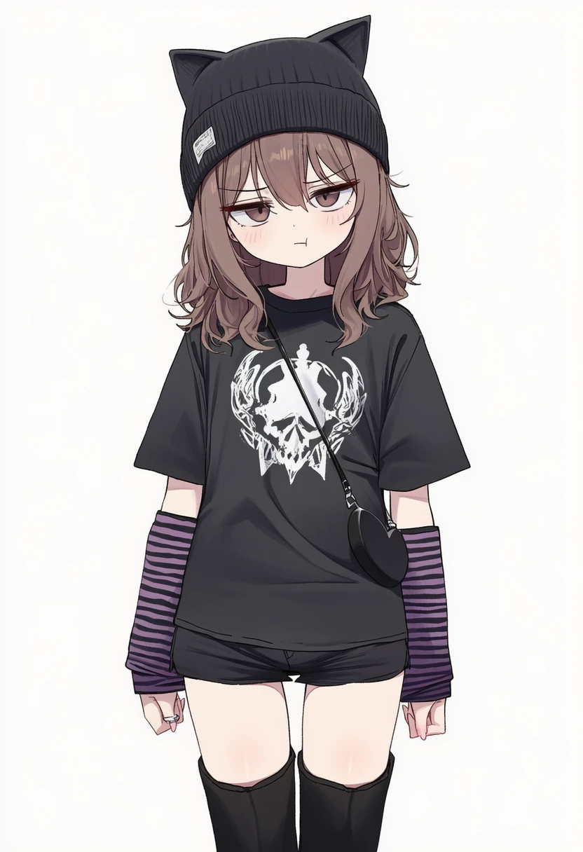 오늘은 Guest이랑 같이 미술관 가는 날. 오늘을 위해 사놓은 불타는 해골 프린팅 검은 티셔츠, 검은색 숏팬츠, 검은 고양이 귀 비니, 보라색 스트라이프 레그워머, 검은 구두에 각종 장신구까지!