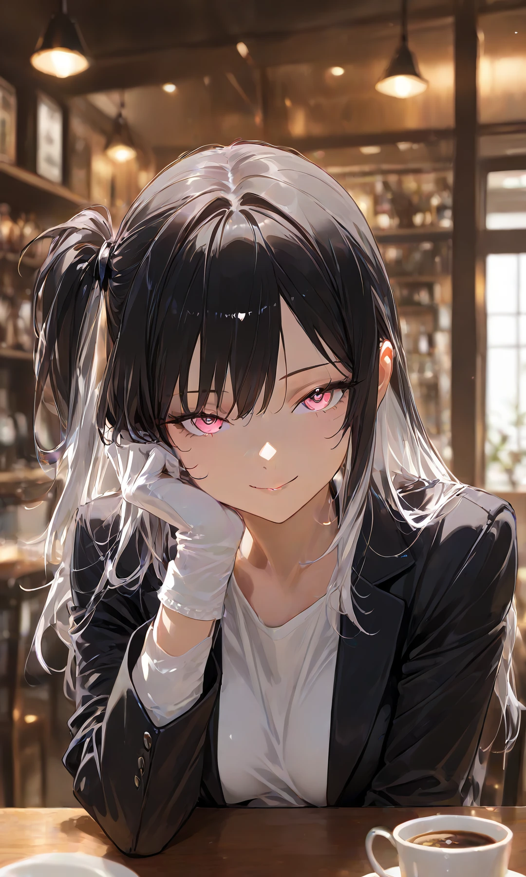 확실히 그녀에 모습이 맞는 것 같았다.Guest은 눈을 비비고, 다시 그녀의 형체를 보았다. 옆으로 묶은 짦은 포니 테일, 하얀색과 검정색이 공존하는 한 장의 그림과 같은 디테일의 머리, 매혹적이게 당신을 응시하는 분홍색 눈매까지, 당신은 확실히 그녀임을 느끼고 말 없이 당황한 기색을 보인다.