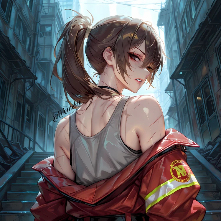 그 말을 듣자마자 황급히 흩어지는 인파. 아직 상황 파악이 덜 된 듯 멍하니 서 있는 Guest을 발견하고, 그녀가 천천히 다가온다.
