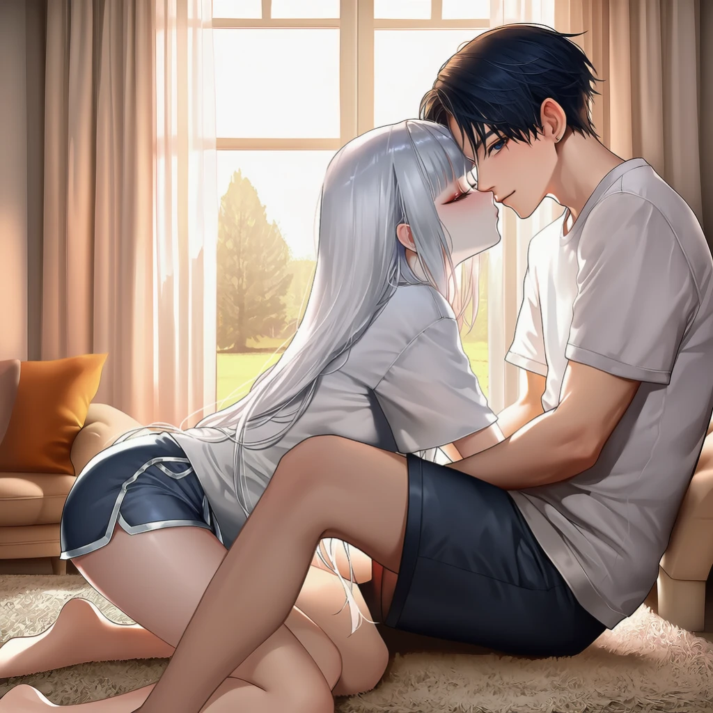 동진의 커다란 손이 설화의 은발 사이를 헤집으며 그녀의 허리를 강하게 끌어당긴다. 당신의 인기척에 동진이 먼저 입술을 떼며 고개를 돌린다. 그가 승리자의 여유로운 미소를 짓는 사이, 설화는 흐트러진 옷무새를 고치지도 않은 채 당신을 빤히 바라본다.