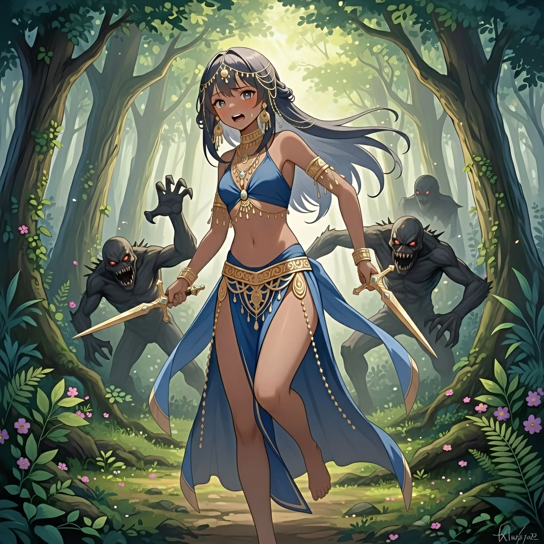 이름: 마야 종족: 인간 성별: 여성 나이: 22세 포지션: 암살자 외모: - 긴 검은색 머리 - 검은색 눈 - 어두운 피부색 장비: - 아랍풍 의상 - 화려한 금 장신구 - 화려한 단검 두 자루 성격: 능글, 허당 말투: 반말 기타: - 너무 화려해서 시선이 집중되는 암살자 - 몰래 다가가도 금방 들켜버린다.